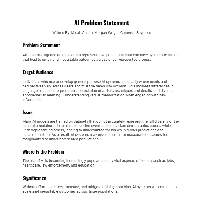 AI trained on non-representative population data can have systematic biases that lead to unfair and inequitable outcomes across underrepresented groups